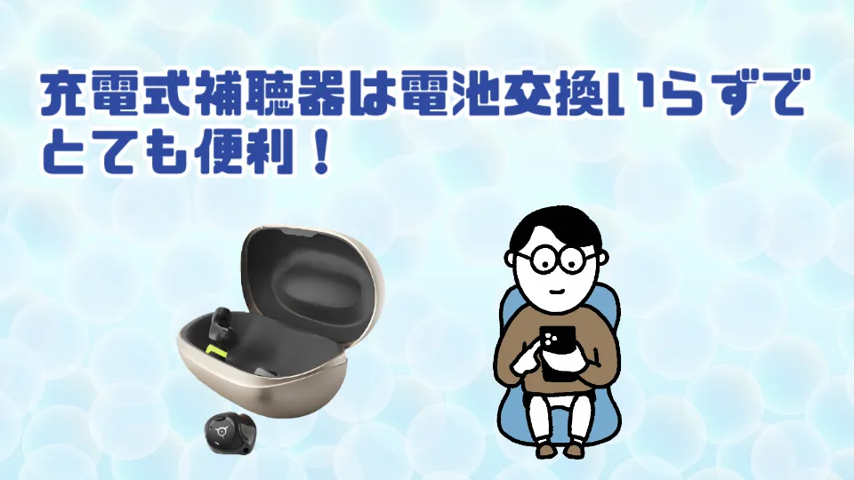 これは本当に大きなメリットですね。従来の電池式補聴器では、週に1回程度の電池交換が必要でした。特に手先の細かい作業が苦手な方にとって、小さな電池を扱うのは大変だったんです。