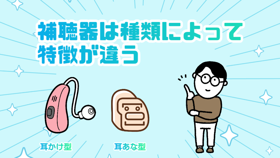 補聴器には大きくわけて耳かけ型、耳穴型の2つのタイプがあります。それぞれの特徴を詳しく説明させていただきますね。